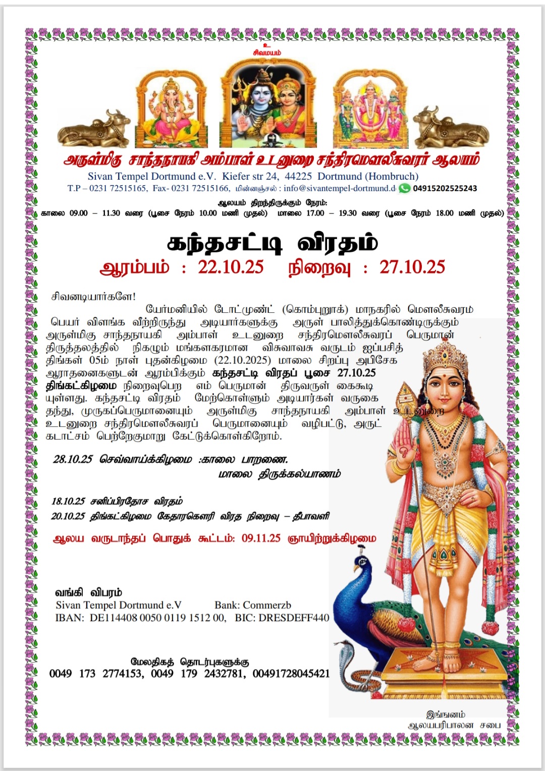 ஐரோப்பாக் கண்டத்தில் ஜேர்மன் திருநாட்டில் சகலவளங்களும் சூழப்பெற்ற நோட்றைன் வெஸ்ற்பாலின் மாநிலத்தில் அறிஞர்கள் சான்றோர்கள சமய சமூகப் பற்றாளர்கள கலைஞர்களையும் தன்னகத்தே கொண்ட டோட்முண்ட் நகரத்தில் கொம்புறுக் என்னும் கிராமத்தில் எழுந்தருளி அடியார்களுக்கு அருள்பாலித்துக்கொண்டிருக்கிறார்.